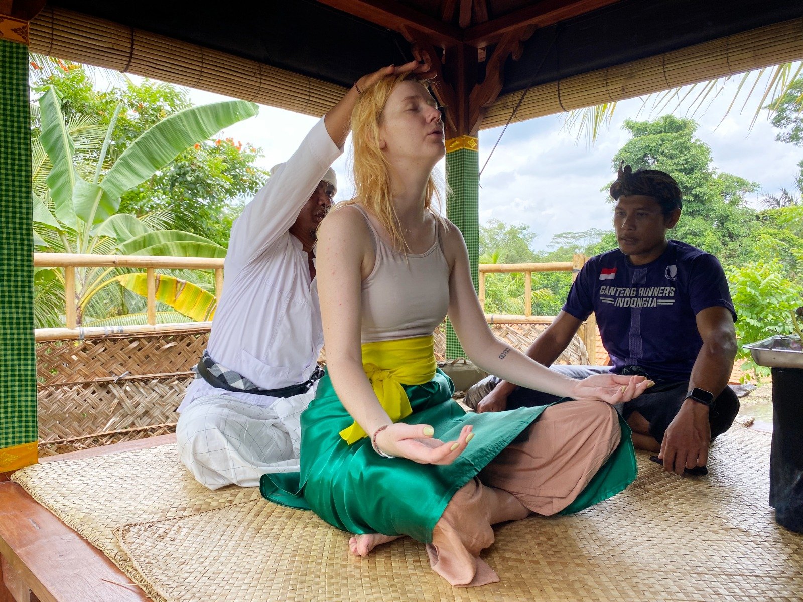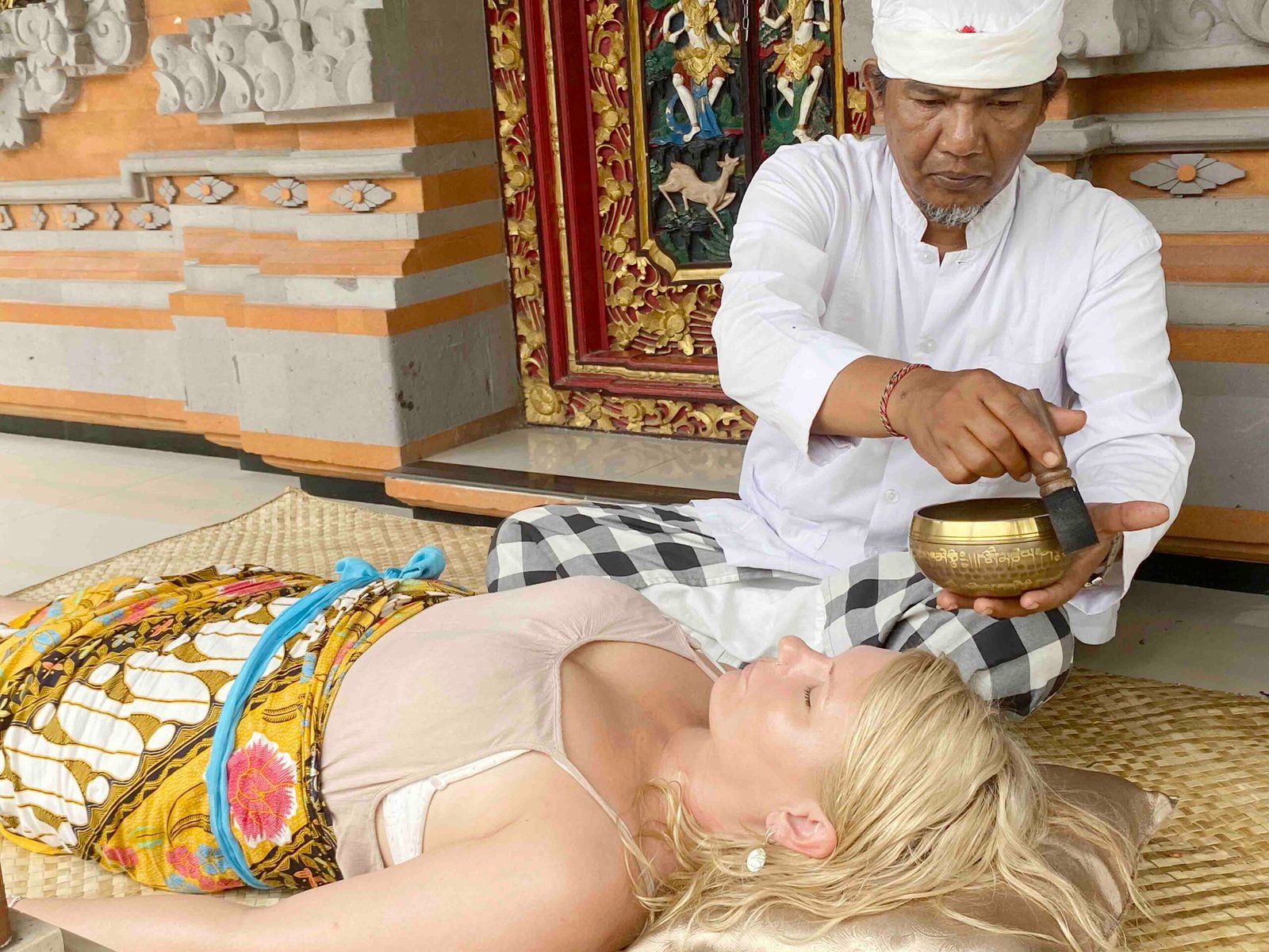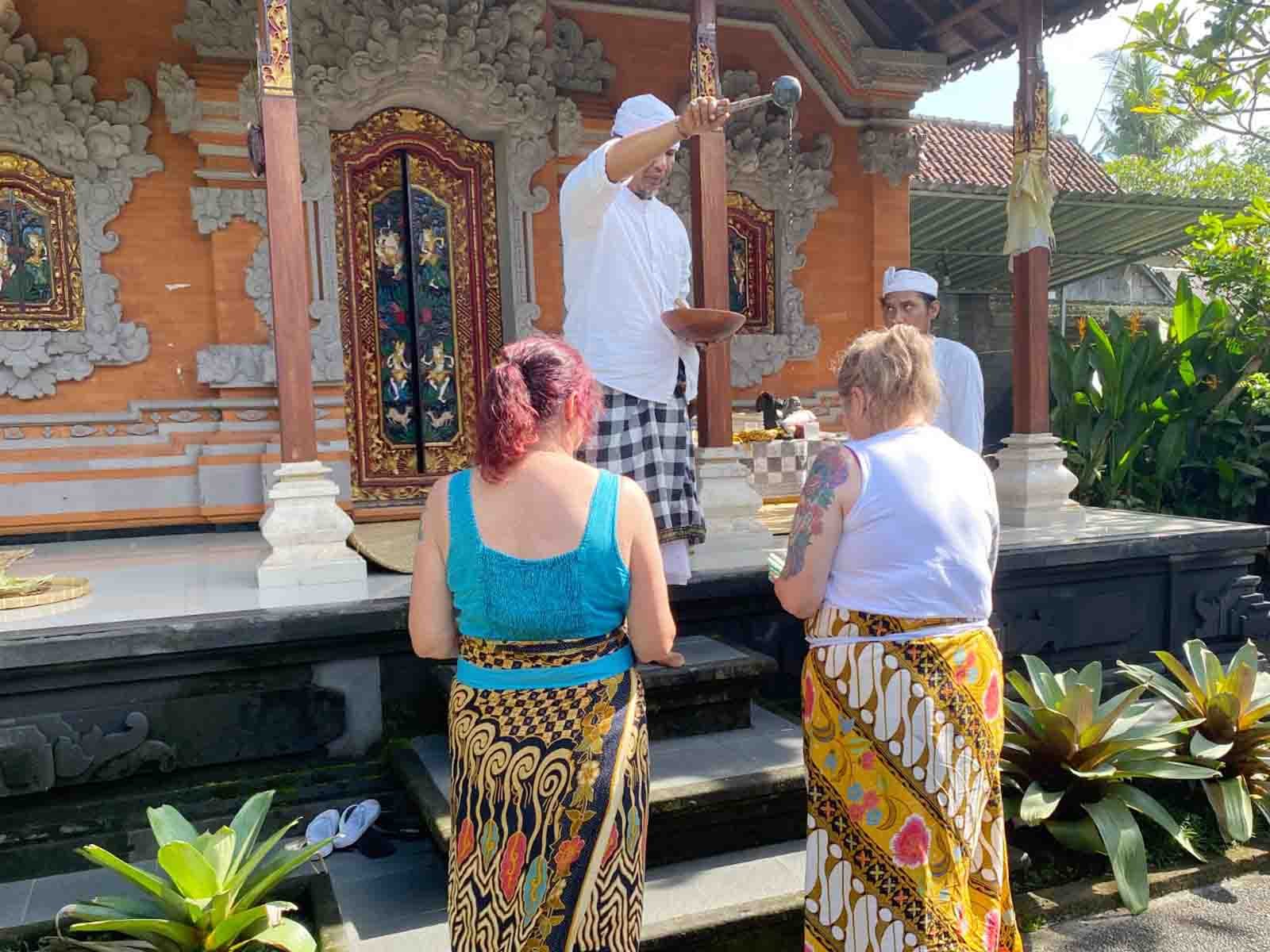 During this ritual series, you will receive an offering (prascita) at the entrance as a symbol of cleansing from impurities, sadness, and mistakes. You will then wear a prepared sarong, guided personally through each step of the process.